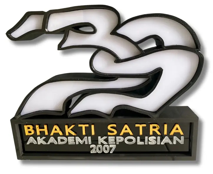 Kenang-kenangan eksklusif untuk angkatan Bhakti Satria Akademi Kepolisian (2007). Plakat ini dibuat dengan standar kualitas tinggi untuk menjaga citra instansi.